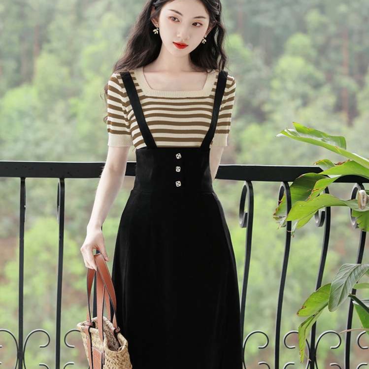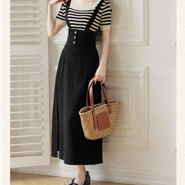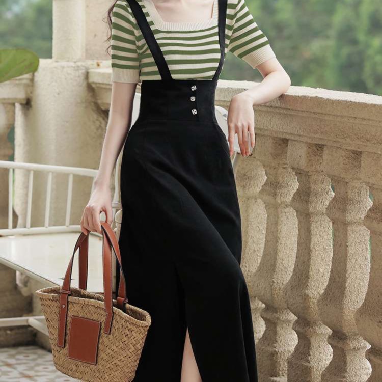 優美な縦長シルエットが特徴のハイウエストジャンパースカート。