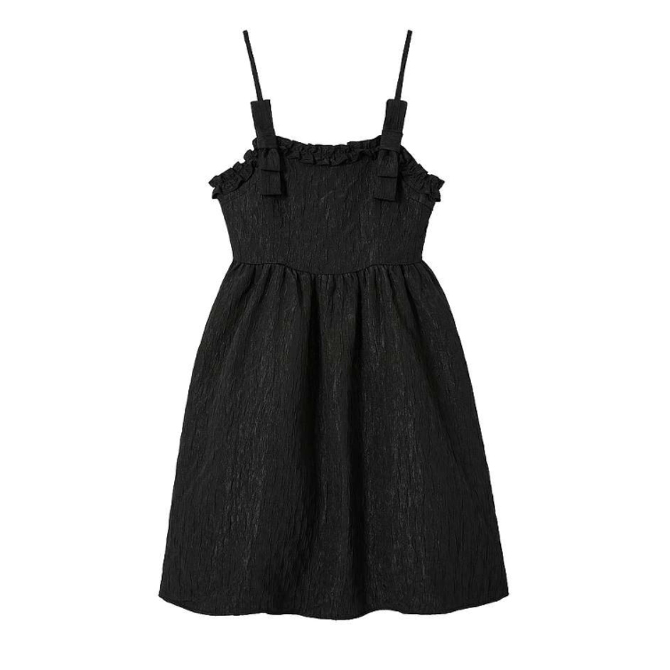 シンプルなデザインながら、フリルの装飾がアクセントとなり、甘すぎない大人の着こなしを演出。